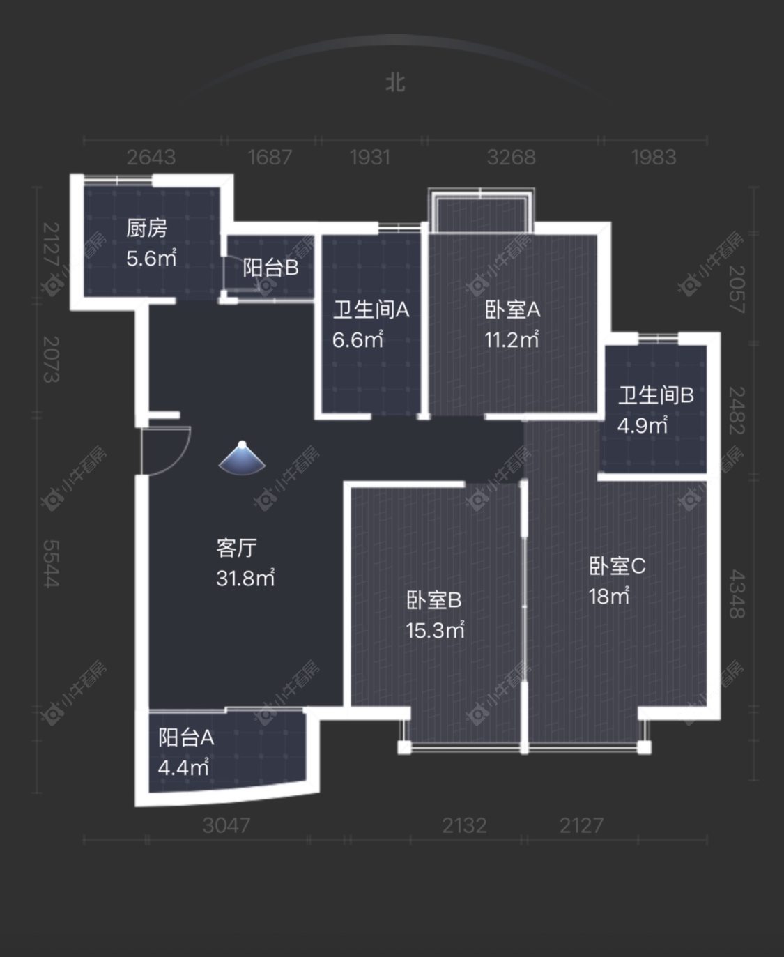 3室2厅2卫 | 123.11㎡ | 南