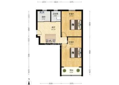 1室2厅1卫 | 91.47㎡ | 南