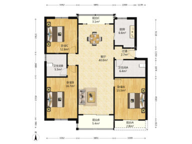 3室2厅2卫 | 139.24㎡ | 南、北