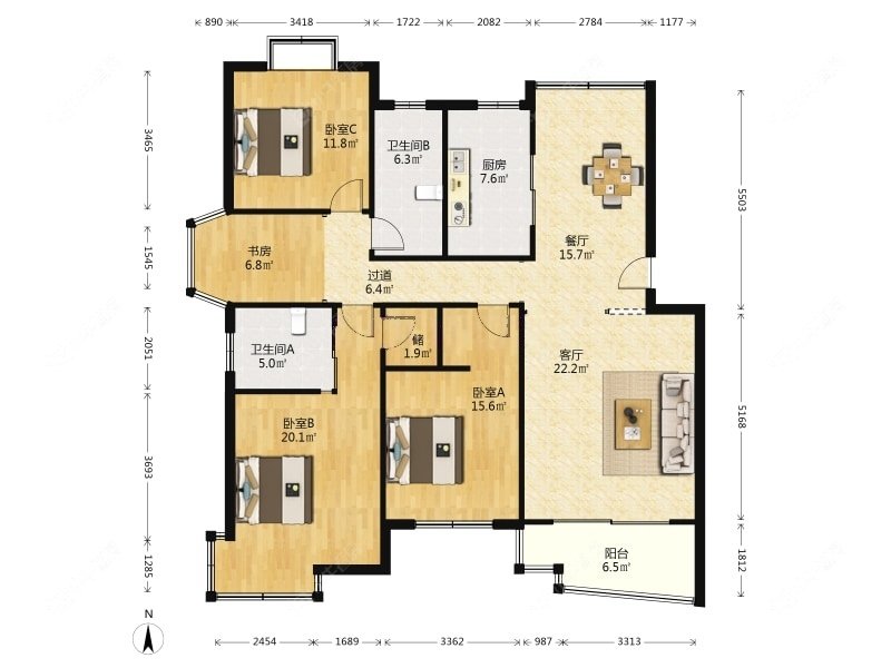 4室2厅2卫 | 157.88㎡ | 南、北