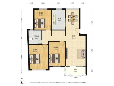 面积115.34㎡ | 南 | 3室2厅2卫