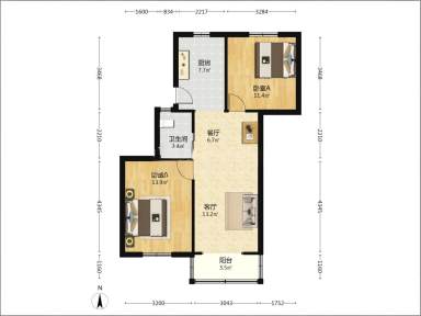 3室1厅1卫 | 75.3㎡ | 南
