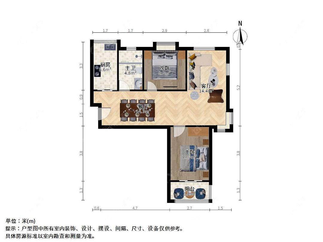 2室2厅1卫 | 87.76㎡ | 南