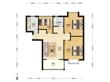 2室2厅1卫 | 84.23㎡ | 南