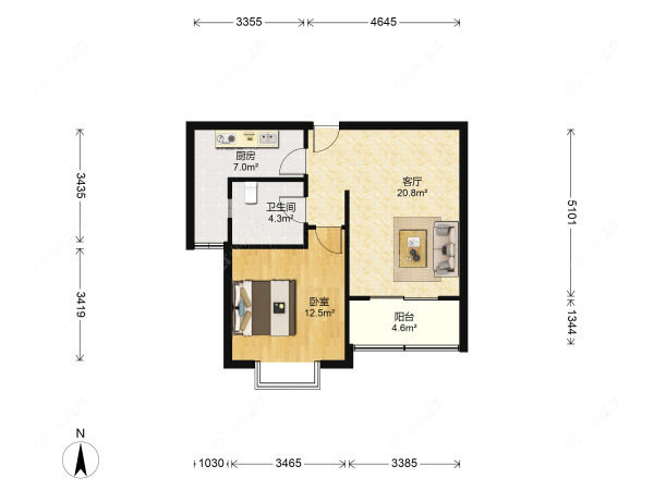 1室1厅1卫 | 57.75㎡ | 南