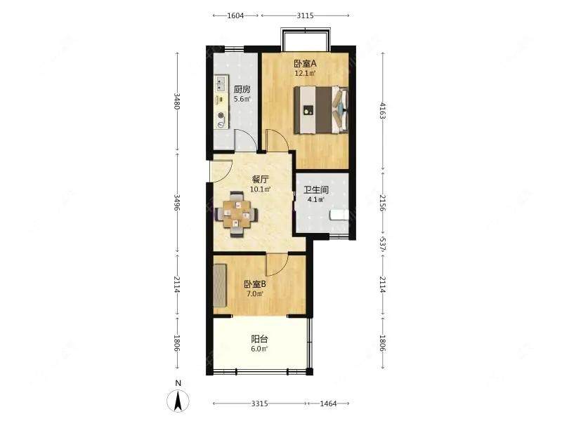 1室2厅1卫 | 53.59㎡ | 南