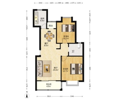 2室2厅1卫 | 86.81㎡ | 南