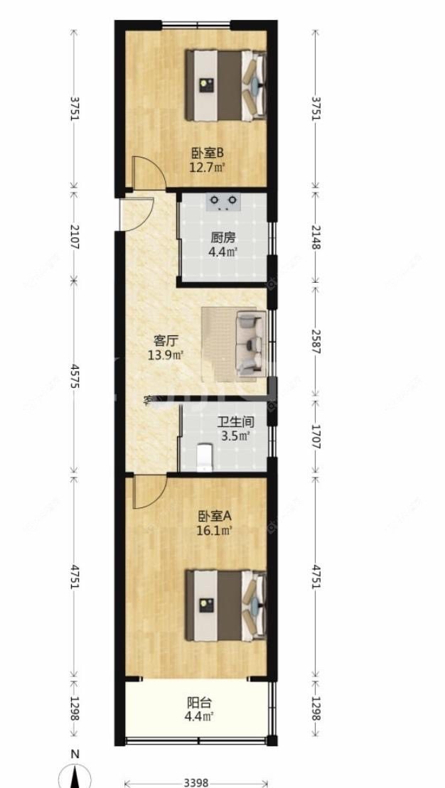 1室 | 44.15㎡ | 东