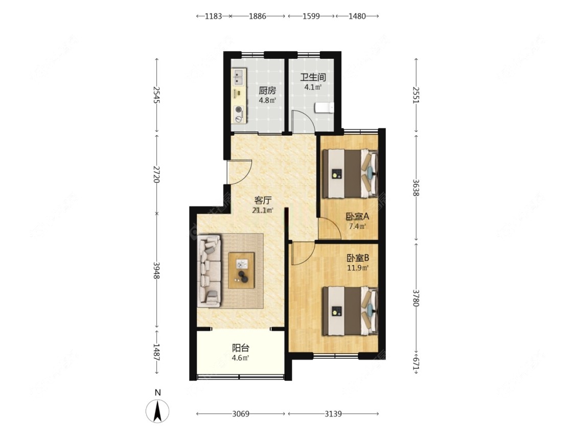 2室1厅1卫 | 67.26㎡ | 南