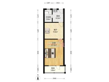 面积35.16㎡ | 南 | 1室1卫