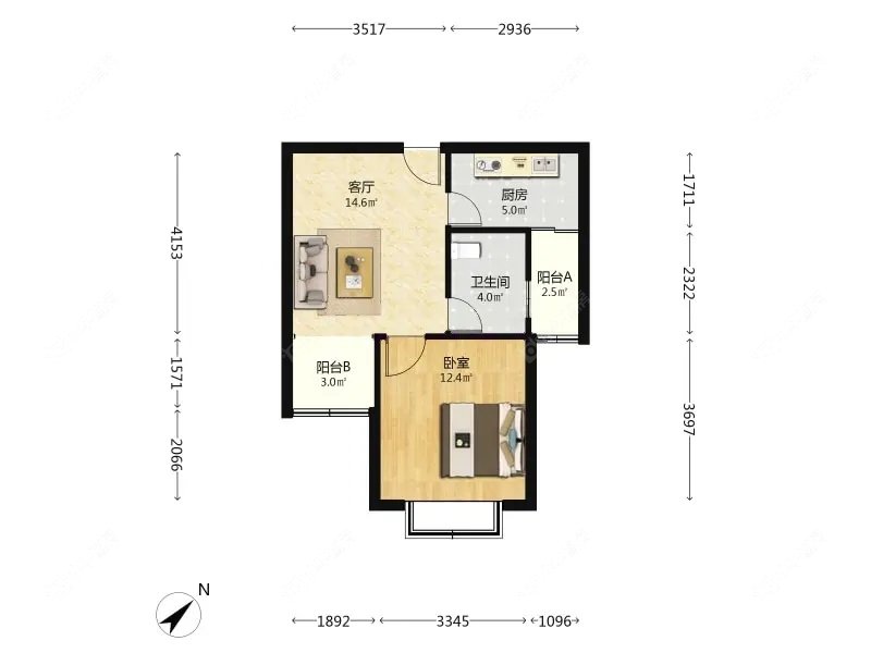 1室1厅1卫 | 53.41㎡ | 南