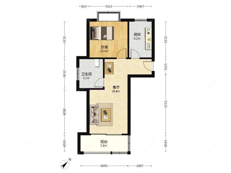 2室1厅1卫 | 69.08㎡ | 南