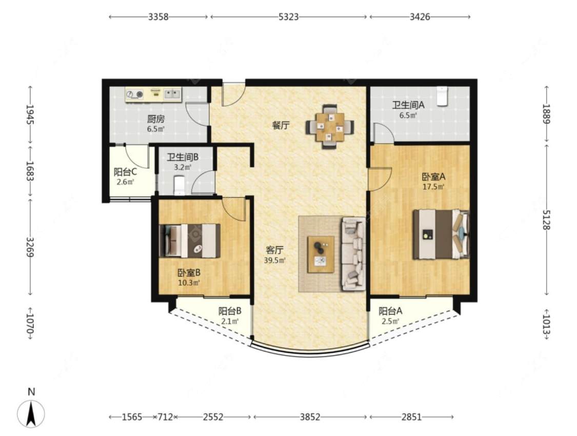 3室2厅2卫 | 168.17㎡ | 南、北