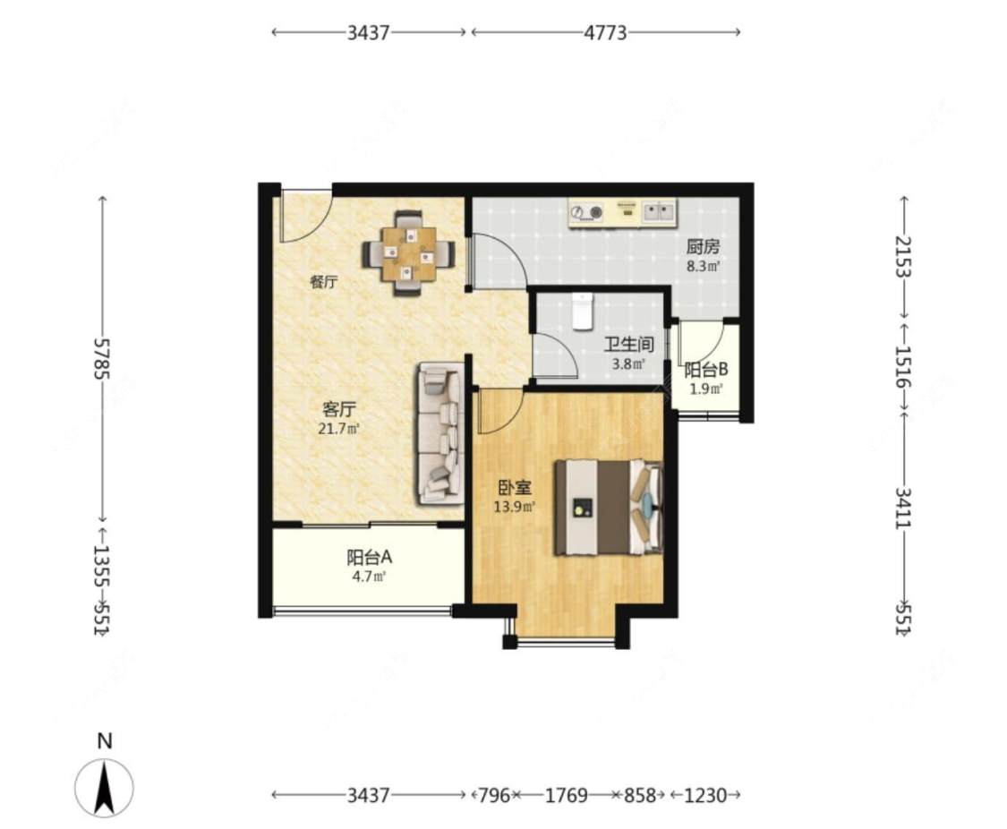 1室2厅1卫 | 73.77㎡ | 南