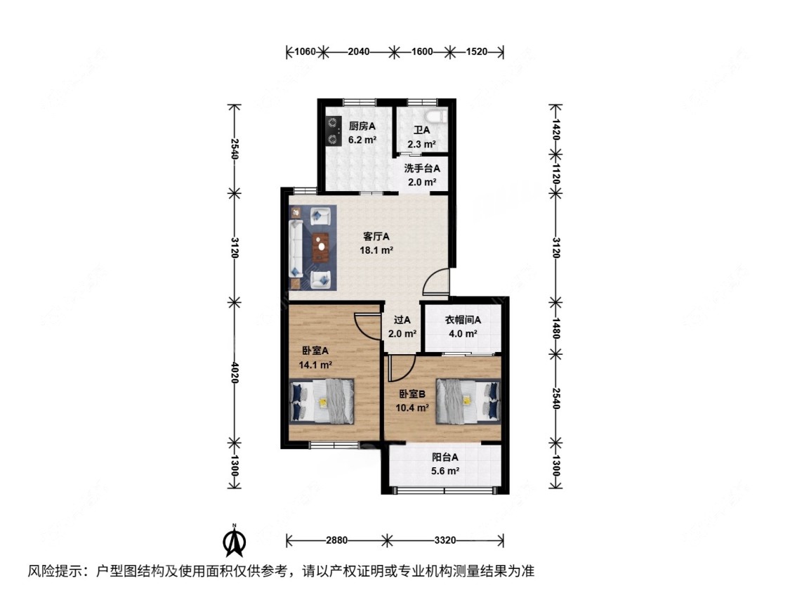 3室1厅1卫 | 77.46㎡ | 南