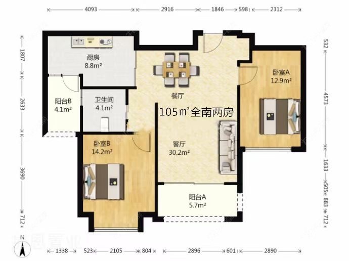 3室2厅2卫 | 132.12㎡ | 南、北