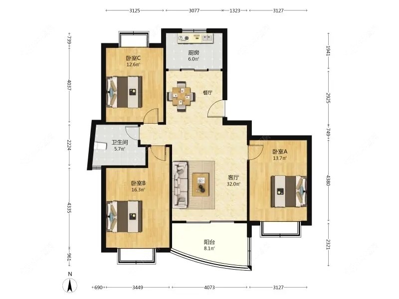 3室 | 126.71㎡ | 东